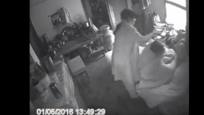 Video sa ekstremnim nasiljem pokazuje Jainovu kako obavija ćebadima svekrvu invalida i grabi je za grlo i vrat. Izgleda kao da pokušava da je udavi. Takođe, vrlo agresivno je tuče po glavi sa nekakvim velikim predmetom.