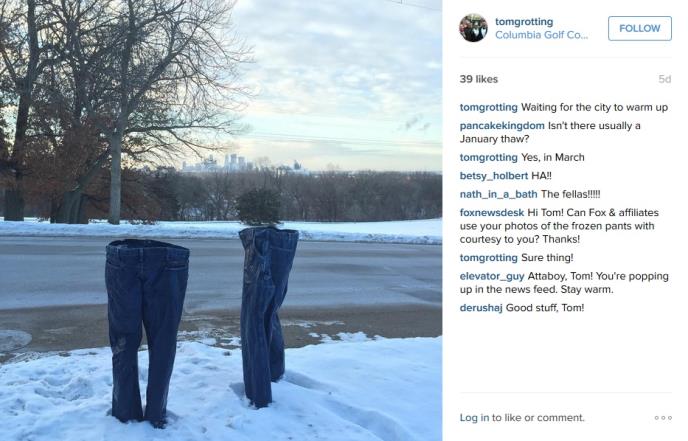 Standing up to the cold in Minnesota! Frozen pants popping up around town. http://www.esquire.com/style/mens-fashion/news/a41302/frozen-standing-pants-minnesota/