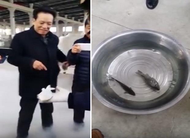 Čovek koji je ribu iz frižidera izvadio, dokazao je prisutnima da je zaista zamrznuta, a onda ju je spustio u toplu vodu. A samo jedan minut nakon odmrzavanja riba je "oživela" i počela da pliva.