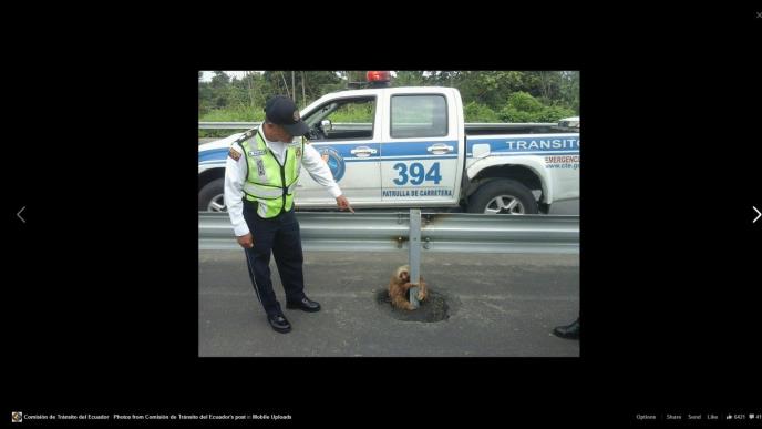 SVETSKI PUTNIK U EKVADORU: Policajac spasao malog, uplašenog lenjivca koji se zaglavio na autoputu