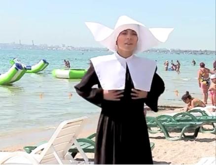 Naime, kada se kao monahinja pojavi na plaži privuče pažnju ali kada se skine u seksi donje rublje izaziva urnebesne reakcije.