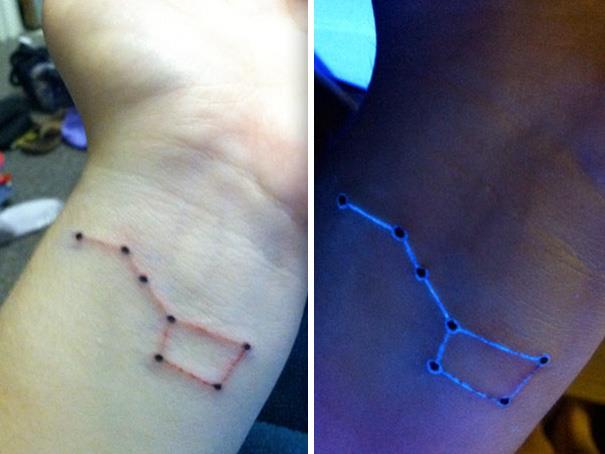 Ako želite da se tetovirate, a nemate dovoljno hrabrosti ili jednostavno želite da "unapredite" svoju tetovažu, ove UV tetovaže su jedino vidljive pod ultraljubičastim svetlom.