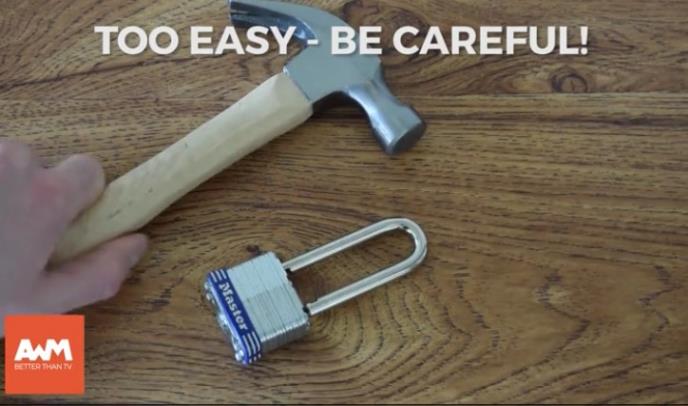 Uz pomoć samo čekića i manje od minut vremena, možete da otvorite skoro svaku bravu. Samo kuckajte sa strane nekoliko puta sa preciznim ali jakim udarcima, i to je to!