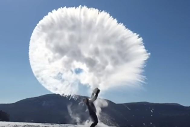 Naučnik iz Ontarija napravio je snimak u kome je pokazao šta se dešava pri susretu ekstremne hladnoće i ključale vode. Čim je dospela napolje, voda se transformisala u tvorevinu nalik magli.
