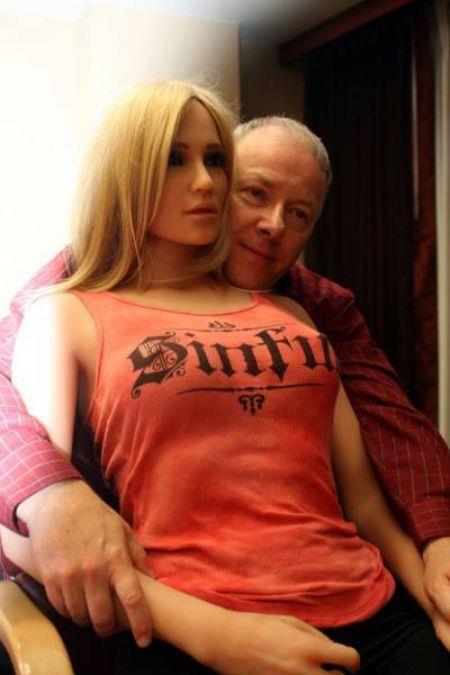 Žena na krevetu je slična seks lutki i ona je devojka čoveka sa fotografije.