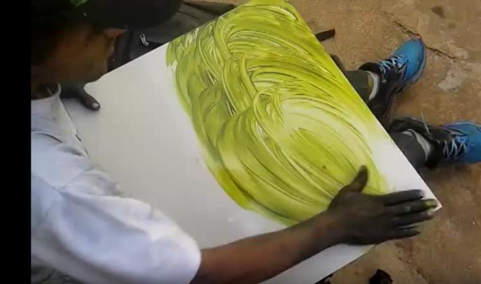 Ovaj mladi čovek koji stoji iza ove slike zove se Rafael. On nikada nije išao na časove crtanja, to je za njega došlo prirodno. Iako su pejzaži koje crta puni boja i živopisni, on je beskućnik koji živi na ulicama Rio Verda, u Brazilu.