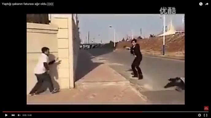 Razrađena šala koju su mladići snimali, već je neko vreme popularna na internetu - ideja je bila da preplaše prolaznike koji bi pomislili kako jedan drugog ubijaju. Ispostavilo se da šala te vrste nosi određene rizike - naime jedan od prolaznika bio je policajac van dužnosti (ili u civilu), koji nije reagovao kao drugi.