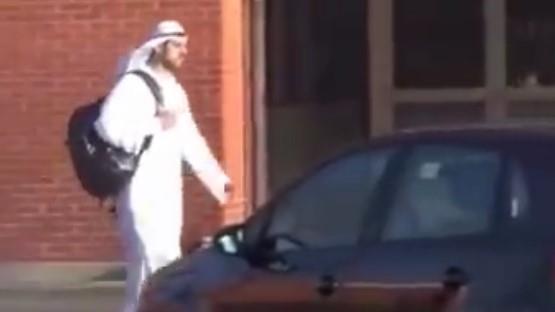 Na društvenim mrežama pojavio se snimak na kojem čovek u tradicionalnoj arapskoj togi ide gradom sa rancem na leđima. Bežanija i opšta panika nastaje kada čovek sa ramena baci ranac i pobegne.