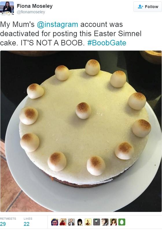 Kada je nalog Su Mozli ugašen zbog objavljivanja "nepristojne" fotografije uskršnje torte, zajedno sa 11 marcipanskih kugli koje predstavljaju Isusa i njegove apostole, ćerka Fiona Mozli požalila se javnosti na Tviteru.