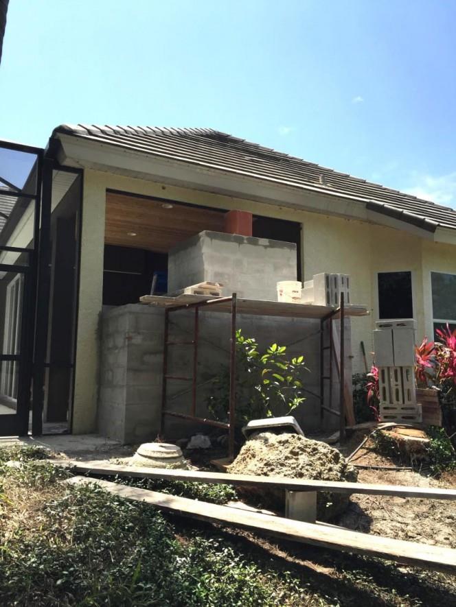 Zatim su počeli da postavljaju betonske ploče i cigle za kamin.
