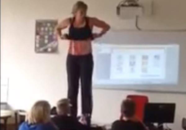 Debi stoji na stolu obučena u odelo od spandeksa na kom su prikazane različite grupe mišića. Ona se ne zaustavlja na tome, jer decu treba naučiti i kako izgleda ljudski skelet. Škola podržava njen neuobičajen sistem predavanja i tvrdi da je vrlo efikasna što dokazuju i rezultati učenika. Pogledajte: