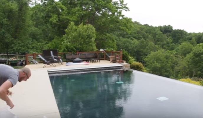(VIDEO) Istresao je kantu punu leda u bazen! Dogodilo se nešto što oduzima dah