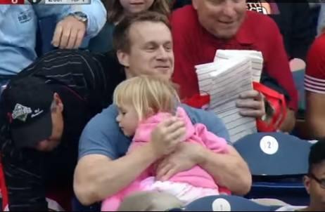 Otac i ćerka gledali us utakmicu. Loptica je udarena i letela je ka publici. Brzo je išla u pravcu oca koji je držao ćerku, otac kao da nije ni razmišljao o svom sledećem potezu. Refleksno je podigao ruku i uhvatio loptu dok je spustio ćerku. Onda su ljudi oko njega počeli da navijaju kao i oni koji su sve to videli na kameri. Takva veština je zaista vredna divljenja.