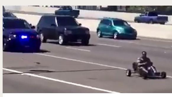 Sve se desilo na auto-putu 880 u Oklandu. Karting je viđen kako vozi kroz dnevnu saobraćajnu gužvu dok ga juri crni policijski SUV. Još uvek se ne zna da li je momak u kartingu uhvaćen.