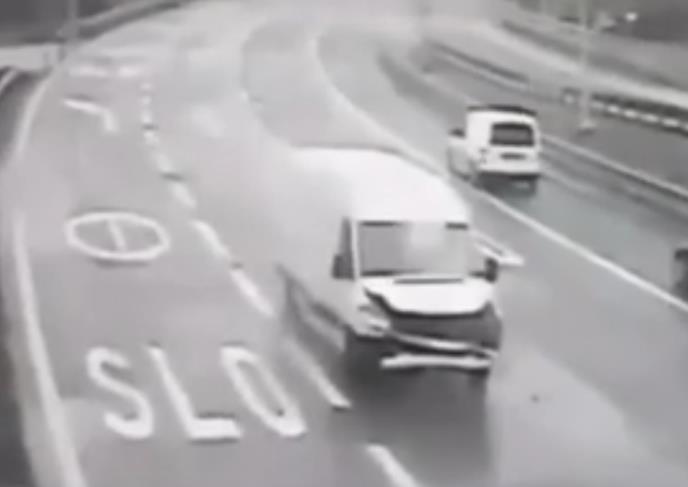 Vozač belog kombija je izgubio kontrolu nad vozilom i udario u zaštitnu ogradu. Ništa spektakularno, zar ne? Pa ipak nekoliko trenutaka posle počela je predstava. Pogledajte: