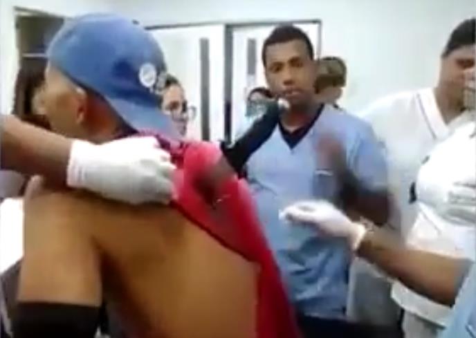 Na video snimku koji dolazi iz Kolumbije vidi se muškarac iz Barankilje kako sedi na bolničkom krevetu sa nožem zabodenim u leđa.