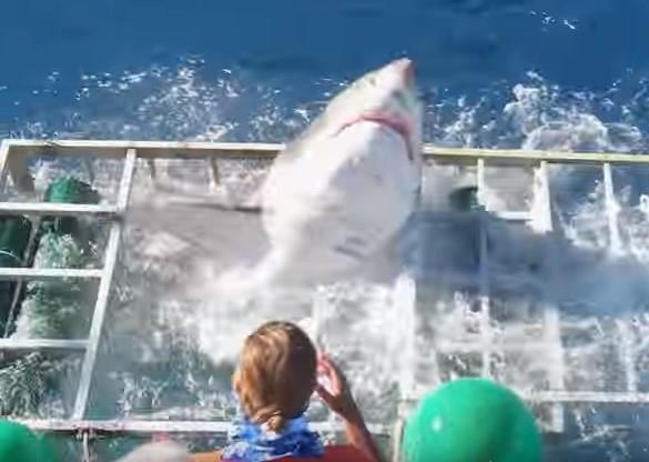 Ronilac koji je želeo da izbliza vidi staništa velikih belih ajkula umalo je izbegao smrt, kada se na njegov kavez okomila ogromna morska neman.