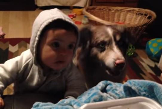 Mama je pokušavala da svoju bebu nauči prvim rečima dok ju je hranila. Pokušala je da je nauči da kaže mama, a sve vreme ih je posmatrao pas, njihov kućni ljubimac.