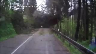 Par koji se vozio autom na vreme je primetio da će drveće ispred njih pasti na put, pa su pokušali da se spasu vraćanjem u rikverc.
