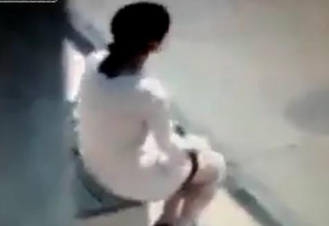 Internetom kruži bizaran snimak mlade žene, obučene u poslovnu belu kratku haljinicu, kako vrši veliku nuždu na javnom mestu.