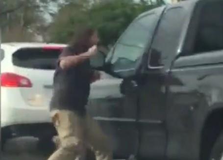 Prolaznici su posmatrali uličnu raspravu kada je besan muškarac izašao iz svog kabrioleta i počeo da lomi prozor muškarcu koji je kolima stajao iza njega.