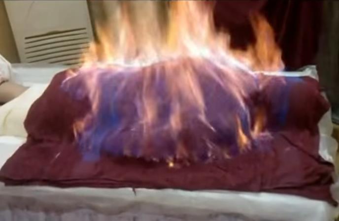 Kineski kozmetičari tvrde da mušterije na taj način mogu da izgube čak 10 kilograma mesečno. Jedna vlasnica salona objasnila je da terapija vatrom funkcioniše tako što se osoba umota u nekoliko mokrih peškira od kojih se gornji pošprica alkoholom i pusti da gori.