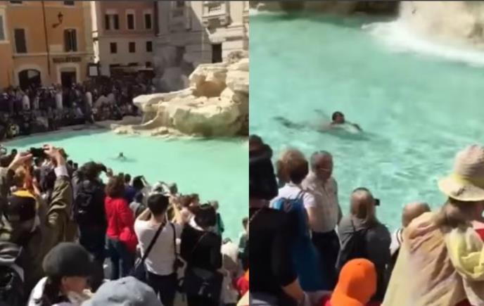 Mladić iz Italije odlučio je uskočiti u poznatu rimsku fontanu di Trevi potpuno go i preplivati je svom dužinom dok je gomila turista gledala njegovu egzibiciju.