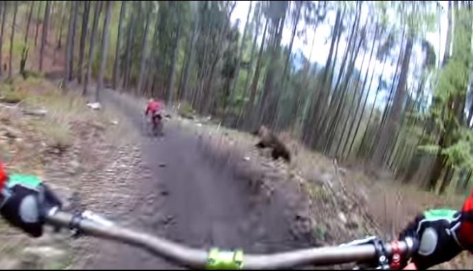Dvojica biciklista su tako u ponedeljak krenula na svoj klasičan trening, ali nisu očekivali iznenadni upad tek nedavno probuđenog medveda na stazu, kom se jedan od biciklista toliko svideo da je počeo da ga juri.