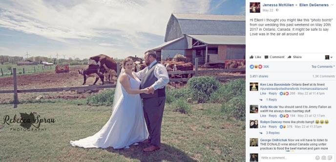 Njhove slike bile su romantične, pune ljubavi, ali Bred i Dženes nisu jedini koji se vole na ovoj slici. Naime, u trenutku fotkanja iza njih se odvijao seksualni odnos između bika i krave. Presmešnu fotografiju mlada je objavila na Fejsbuku i oduševila internet.