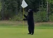 Na internetu se pojavio nesvakidašnji video snimak sa medvedom koji voli golf. Naime, ova divlja životinja je očigledno baš želela da učestvuje i da se oproba u igri, pa je usred partije ušao na teren. Nakon što je ušetao na travnatu površinu na Aljasci, meda je prvo otišao do rupe, gde mu je zastavica bila veoma zanimljiva, pa je želeo da je iščupa, ali su ga golferi sprečili povicima "hej, hej, hej".