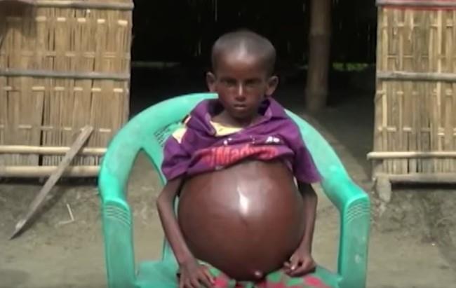 Šahanur Alam (7) iz Indije ima stomak koji je nadmašio veličinu dve fudbalske lopte. Zbog toga je nepokretan, a njegovim roditeljima je potrebna finansijska pomoć kako bi pomogli svom nesrećnom sinu koji se svakog dana bori za život. Dečak ne može da hoda zbog težine svog stomaka, a sve što pojede ubrzo nakon toga i povrati. Doktori kažu da je operacija jedini način da ga održe u životu, a ona košta 2.800 evra. Otok je izazvan dvostrukim pleuralnim izlivom koje izaziva veliko povećanje tečnosti.