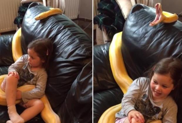 Na njemu se vidi kako njegova ćerka gleda televiziju zajedno s pitonom Šer, koji je dugačak čak 3,6 metara. Devojčica sve vreme mirno sedi i ne trepće, a deluje i kao da se ona ne plaši uopšte, piše www.espreso.co.rs.