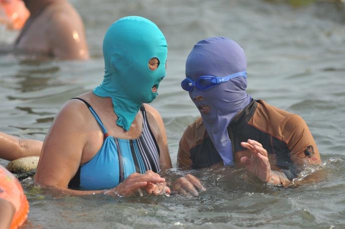 U Kini se koristi mnogo proizvoda za održavanje blede kože. I dok se mnoge diče svojom bronzanom kožom i istu vide kao uslov za lepotu, azijske žene smatraju da je bela koža odraz prave lepote pa zbog toga na plaži nose masku koja prekriva kompletnu glavu ostavljajući mini otvore za oči, nos i usta.