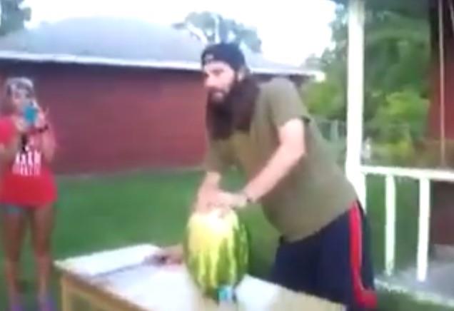 (VIDEO) PRESEKAO JE LUBENICU MAČEM: Nije ni slutio da će uslediti horor!