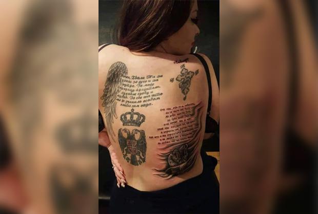 Jedna devojka na svojim leđima ima pravu zbirku tetovaža, orjentisanih na dve teme - Srbiju i veru.