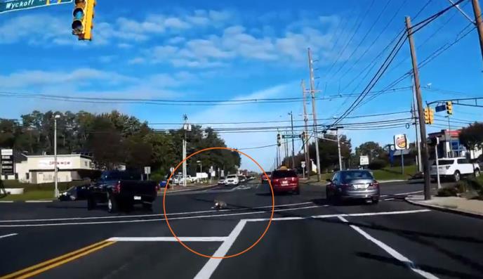 Na snimku, koji stiže iz Amerike, vidi se kamionet kroz čiji je prozor virio pas. Usledilo je naglo skretanje i životinja je ispala nasred raskrsnice. Po hramljanju se čini da je pas povredio nogu, a čista je sreća što ga nijedno vozilo nije udarilo.