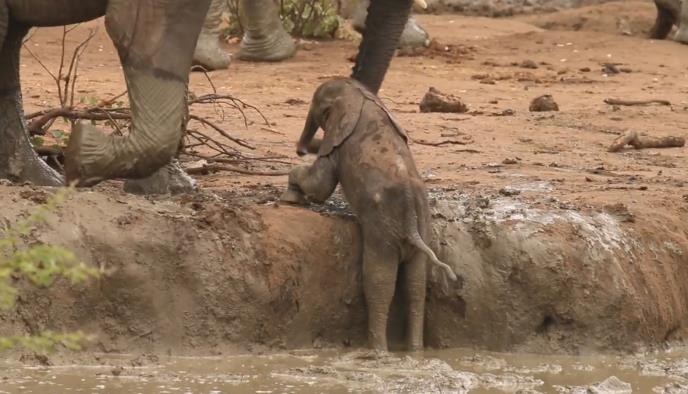 Upravo takvu situaciju je imalo i jedno slonče, koje je mukotrpnim naporima pokušavalo da se izvuče iz blata i dokopa obale.