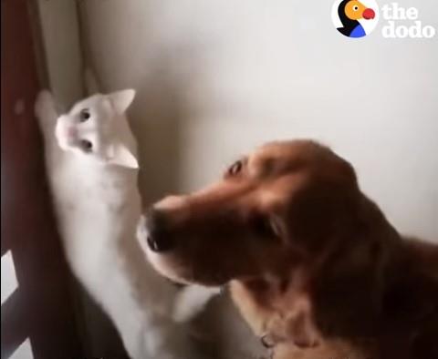 U dom vlasnika ovog psa, doselio se i beli mačak. Iako ni sami vlasnici nisu očekivali, pas i mačka su se od prvog dana sprijateljili i sada sve rade zajedno.
