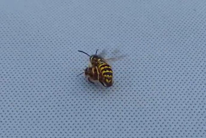 Naime, u borbi njih dve osa je za manje od minuta bukvalno presekla drugog insekta na pola.