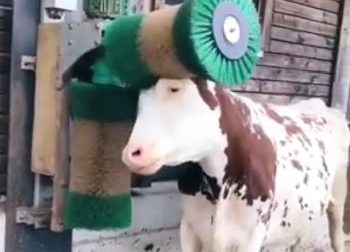 Kravica sa snimka živi je dokaz da i veće životinje mogu da se "navuku" na to, a s obzirom na njene gabarite, ona je pronašla i ko joj najbolje to radi.