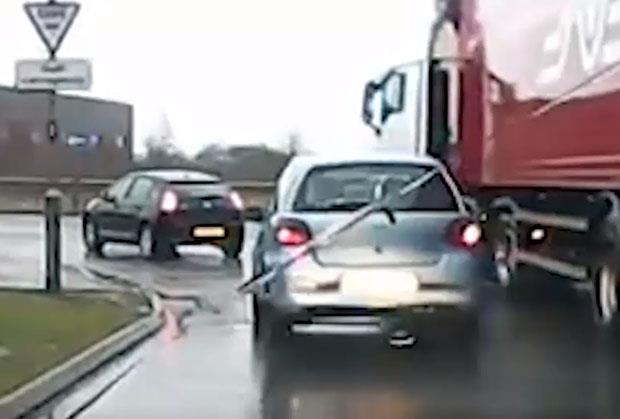 Dve trake, u prvoj putnički automobil a u drugoj šleper. Otvorio se prolaz da oba učesnika u saobraćaju skrenu u željenom pravcu. A onde je usledio ŠOK! Evo i kakav!