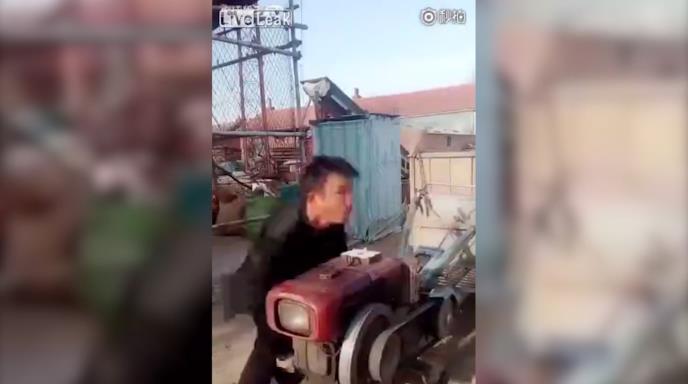 Jedan poljoprivrednik iz okoline Pekinga, imao je velikih problema sa motorom traktora od kojeg mu sve zavisi. Zato je i dao sve od sebe, ne bi li ga pokrenuo. Makar i zamalo pao u nesvest zbog vrtenja glavom kao da sluša stare hitova Bitlsa. Na kraju mu se trud isplatio, što je jasno vidi na njegovom izrazu lica! Spremite se za smeh do suza!