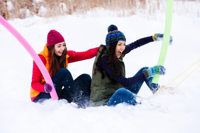 Dve devojke su iz samo njima poznatog razloga došle na ideju da u kupaćim kostimima i čarapama ulete u sneg kao da su u punoj zimskoj opremi.