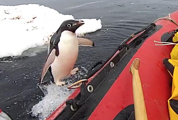 Tako je ekipa koja radi za australijsku antarktičku diviziju bila na istraživačkom čamcu kada im se desilo nešto neočekivano. Najpre se nešto začulo iz vode, a onda je pravo pred njih iskočio - pingvin. Bacio je pogled šta se dešava u čamcu, a onda ponovo bućnuo u okean.