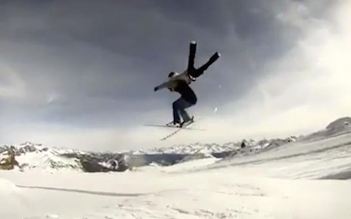 Pogledajte ovog skijaša, koji sa odraslim detetom na ramenima izvodi akrobacije dok se niz snežnu padinu spušta neverovatnom brzinom!