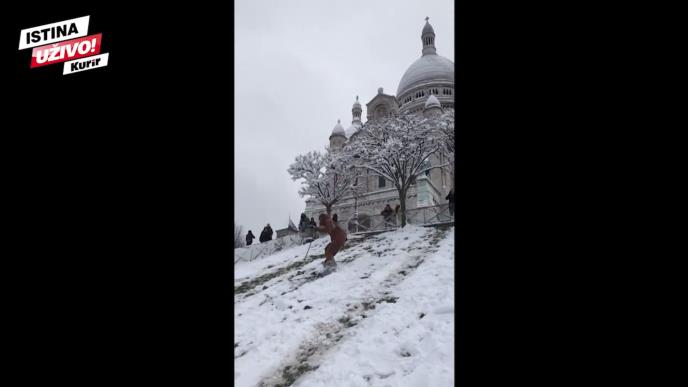 Putare u Parizu jeste iznenadio sneg, ali su zato stanovnici glavnog grada Francuske našli način da dodju do željenih destinacija, doduše na skijama.Gradski spust u Parizu danas je najpopularniji sport