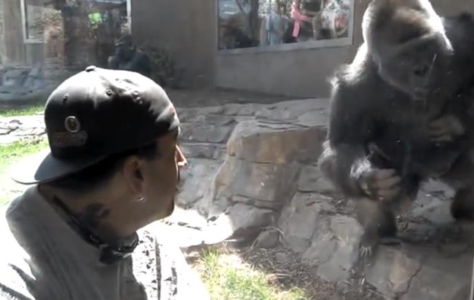 Gorila je pokazao svoju nadmoć nad posetiocem zoo-vrta.