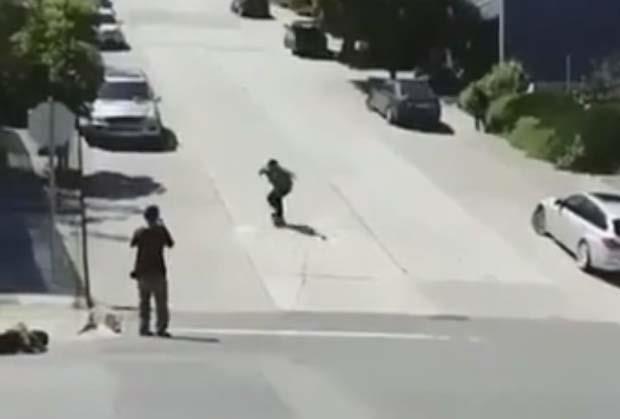 Nizbrdica je bilo toliko primamljiva da joj nijedan skejter ne bi odoleo. Nje ni akter ovog klipa, pa je odlučio da se sjuri niz nju.