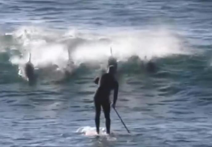 Naime, nedužni surfer im se našao na putu, a da li je delfin, plivaući ravno ka njemu, mogao da ga mimoiđe ili ne - procenite sami.