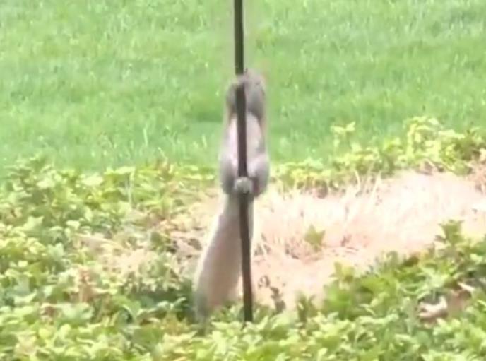 Nismo sigurno šta je smešnije, životinjka kako uporno pokušava da se popne, smeh kreatora videa ili veveričino proklizavanje niz šipku.